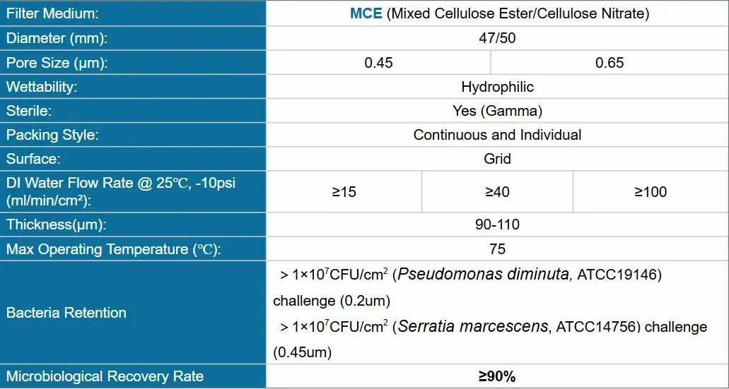 Orientfiltr High Performance MCE membrane uses microbiological – “friendly” ink which promotes growth on grids to maximize recovery